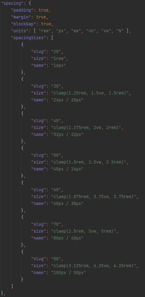 Styles — spacing — blockGap – used as the default gap/margin for some blocks like the Group and Column blocks.